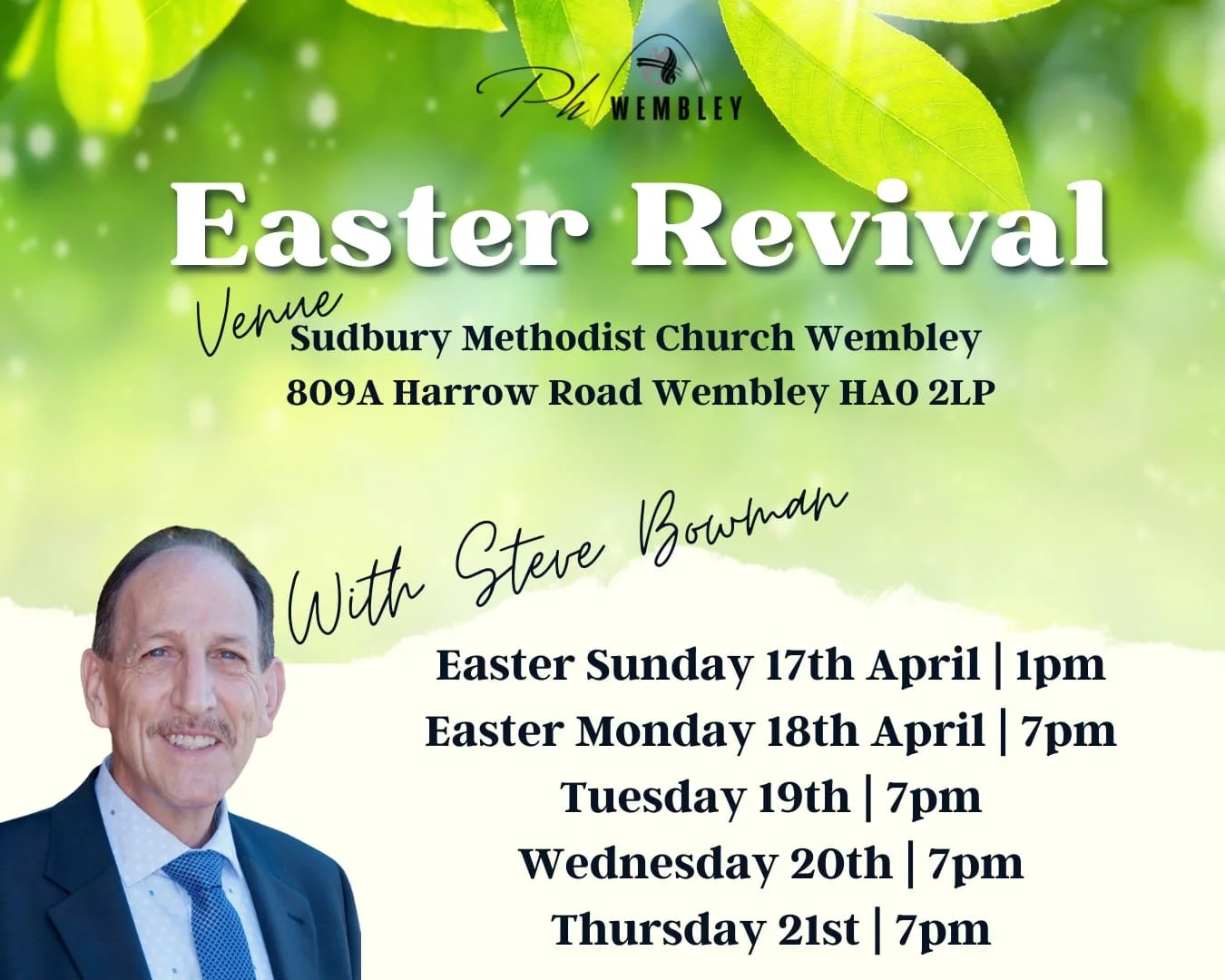 Easter Monday Revival Service with Peter Bowman | PH Wembley Monday 18 April 2022 19:00 21:00 Sudbury Methodist Church 809 Harrow Road Wembley, England, HA0 2LP United Kingdom (map) Google Calendar ICS