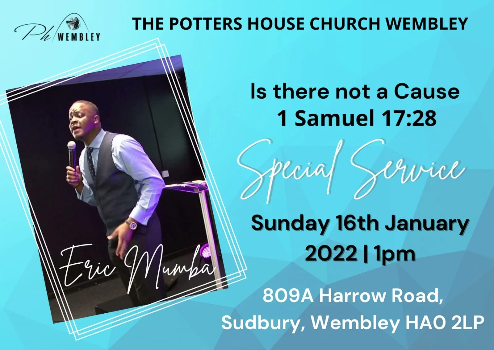 Back to All Events Special Service | "Is there not a cause?" - By Pastor Eric Mumba Sunday 16 January 2022 13:00 16:00 Sudbury Methodist Church 809 Harrow Road Wembley, England, HA0 2LP United Kingdom (map) Google Calendar ICS